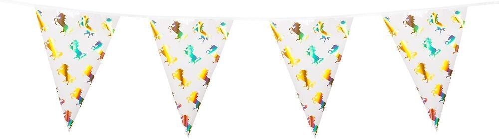 Eenhoorn wit met goud folie vlaggenlijn holografisch