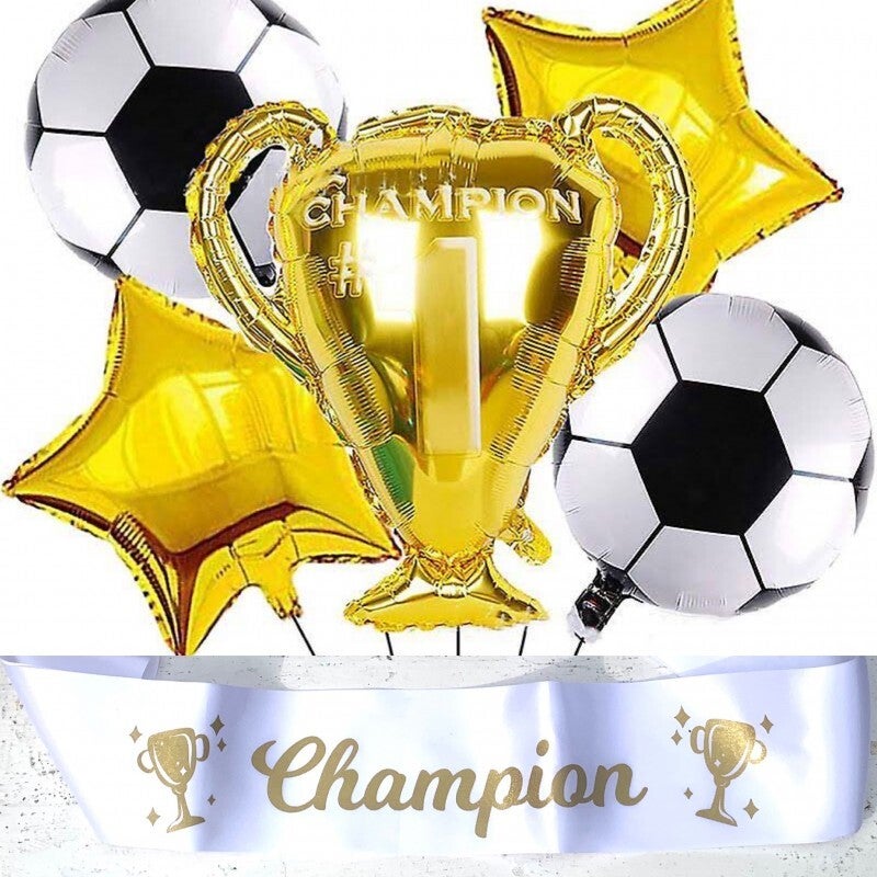 21-delige Voetbal Kampioen met 16 sjerpen Champion en een grote folie ballonnen set
