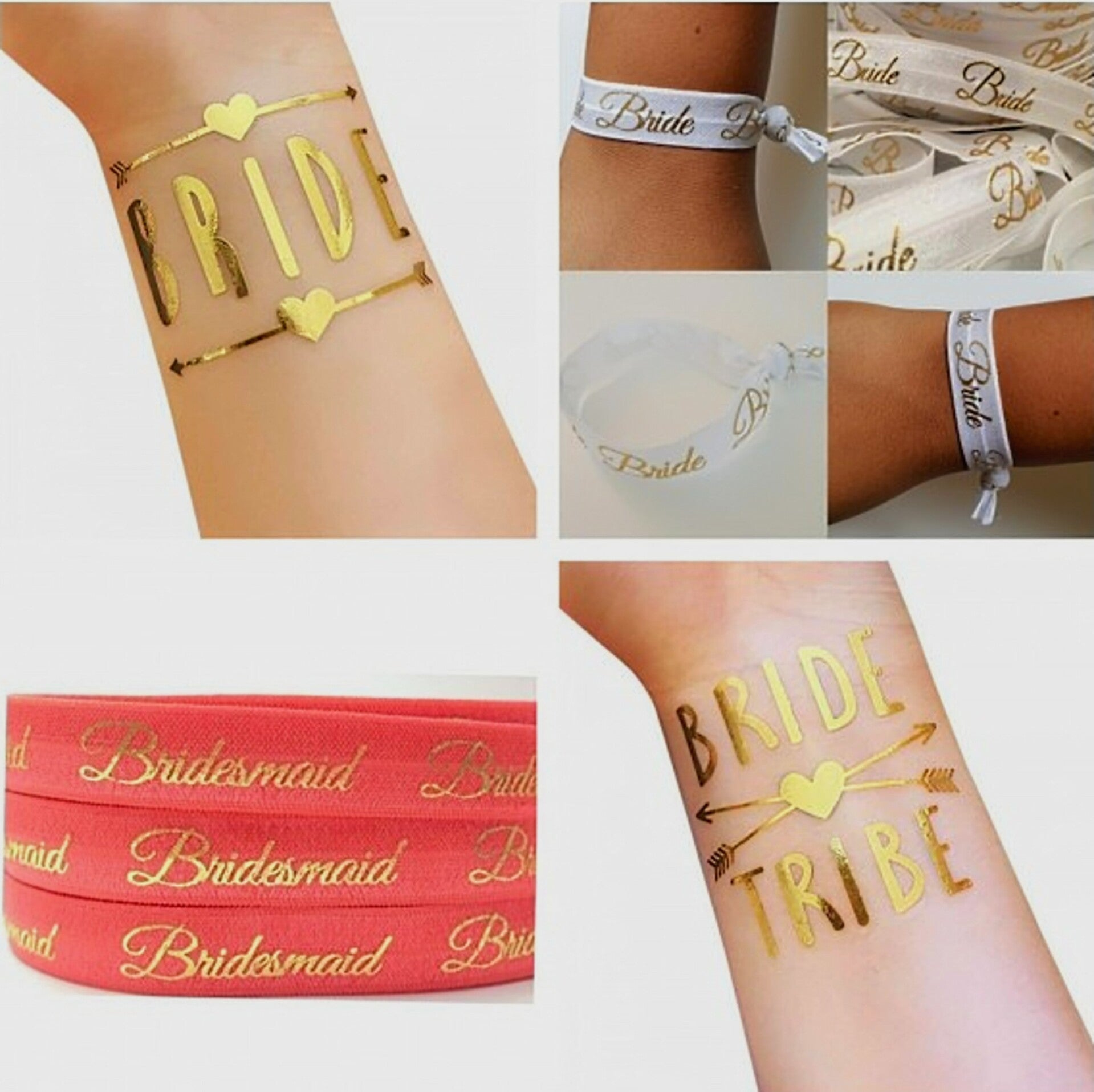 - 10 delige verwijderbare bruidstatoeage set Bride Tribe. Deze tatoeages zijn ook als glas decoratie te gebruiken. Ze zijn makkelijk aan te brengen én weer te verwijderen