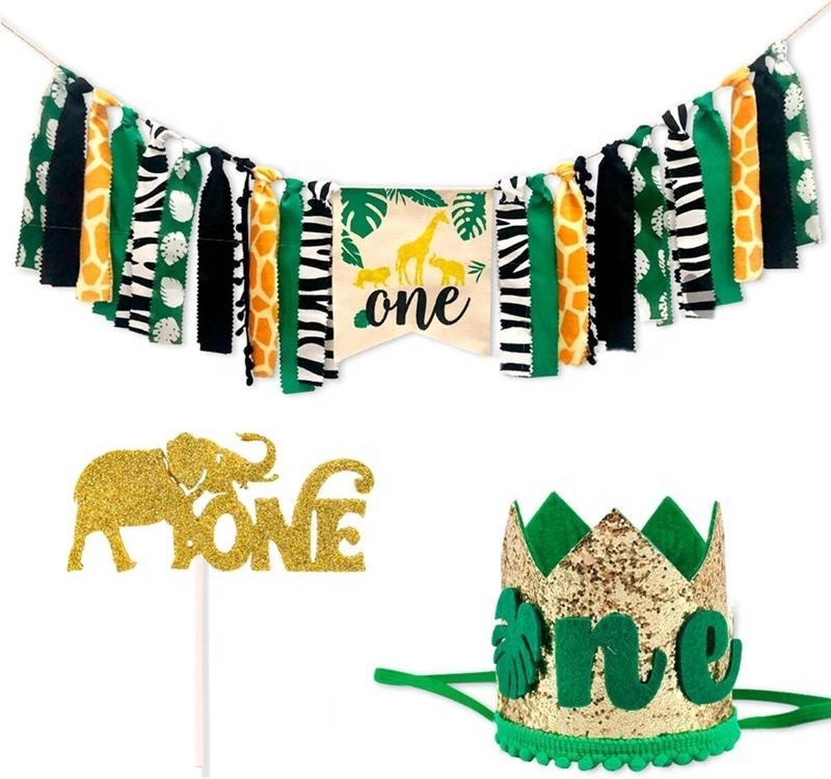 Super leuke eerste verjaardag set met een hoedje, slinger en taart topper.