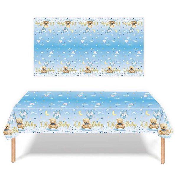Oh Baby blauw plastic tafelkleed met beertjes