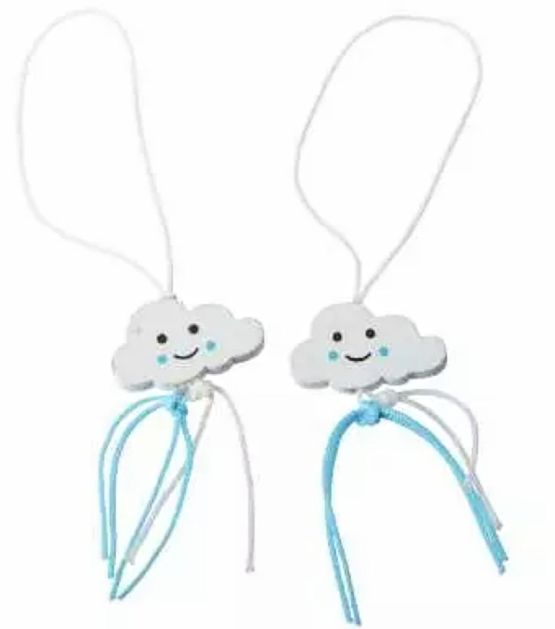 Gelukspoppetjes in de vorm van een wolk wit met blauw