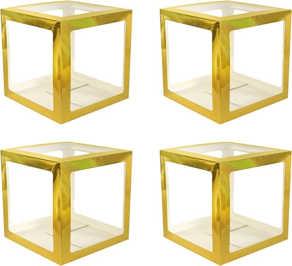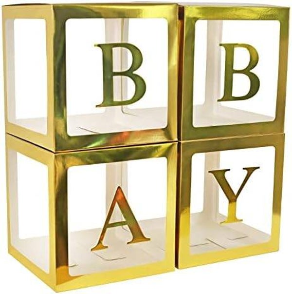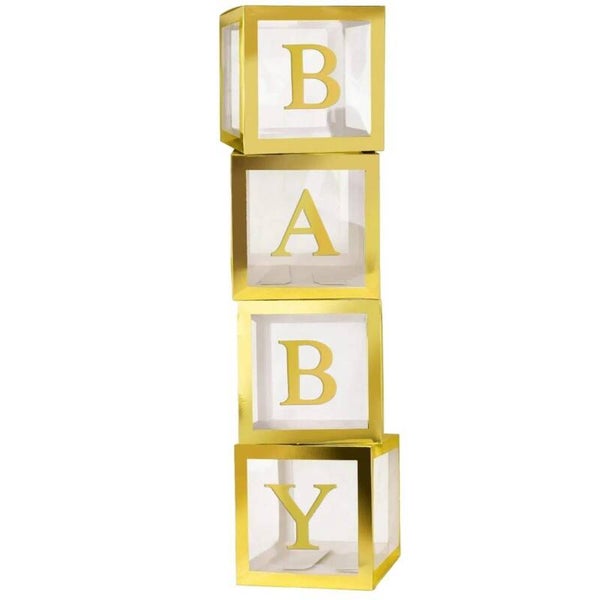 Vier doorzichtige letter ballon blokken goud