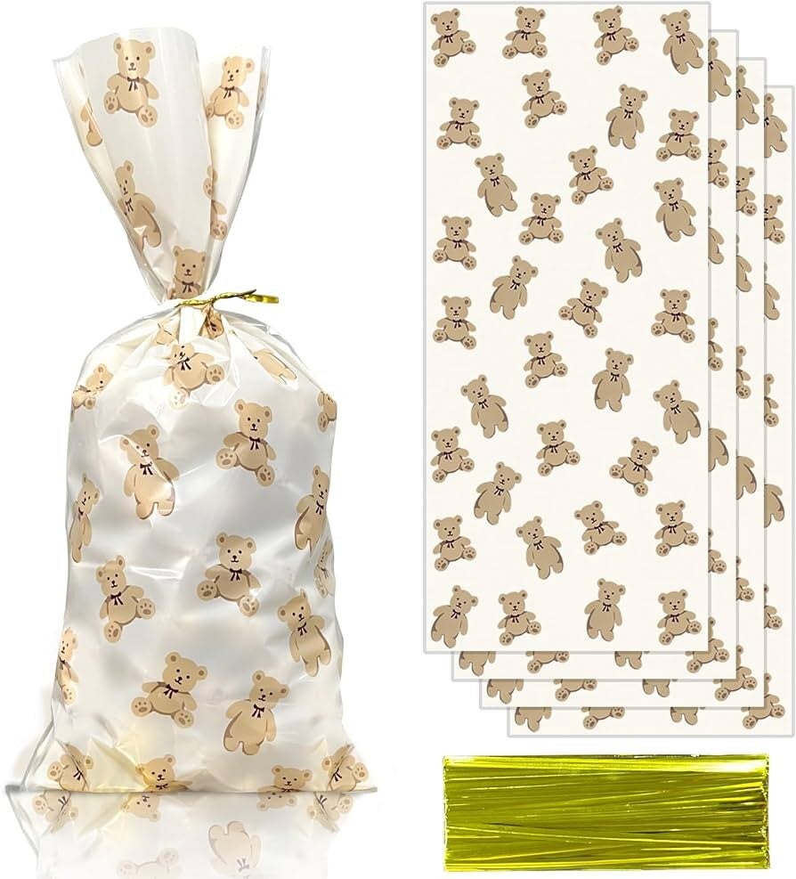 Pak met 25 doorzichtige cellofaan zakjes met beertjesAfmeting per zakje: 27,5 x 12,5 cm