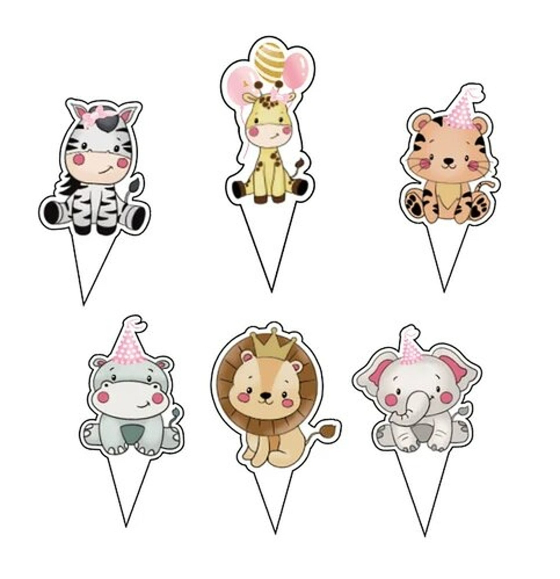 Jungle Safari Themafeest kartonnen cupcake toppers roze