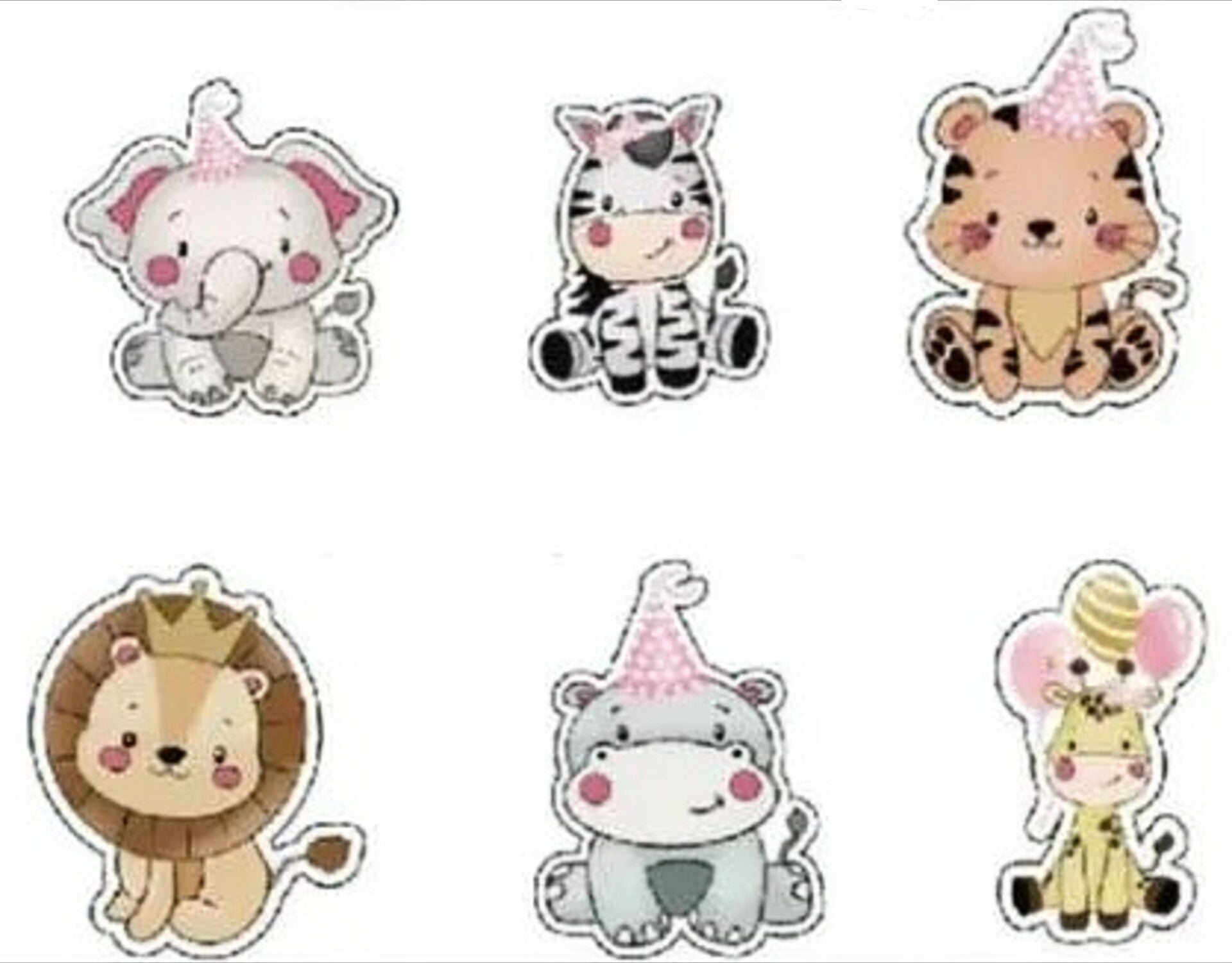 - 24 Jungle Safari Themafeest kartonnen cupcake toppers roze. Hoogte: ongeveer 9 cm. 6 verschillende dieren, met 4 cupcake toppers per dier