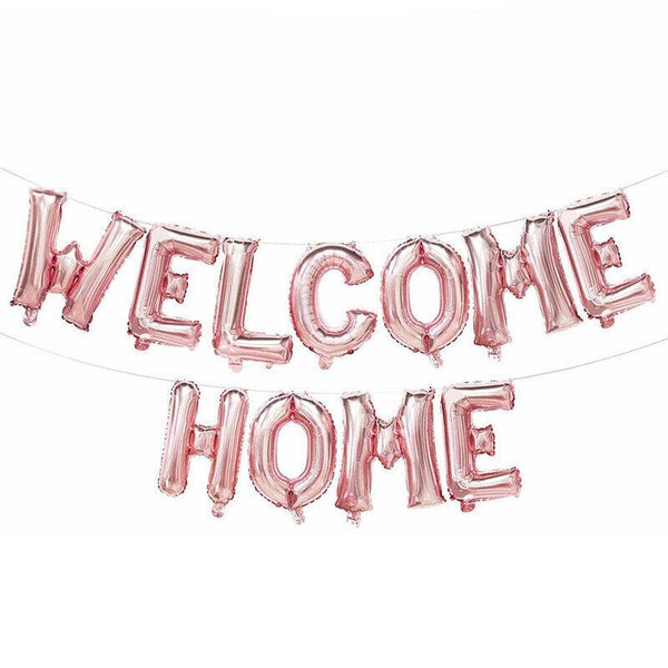 - 11 fole letter ballonnen van elk 40 cm hoog, die samen de tekst Welcome Home vormen