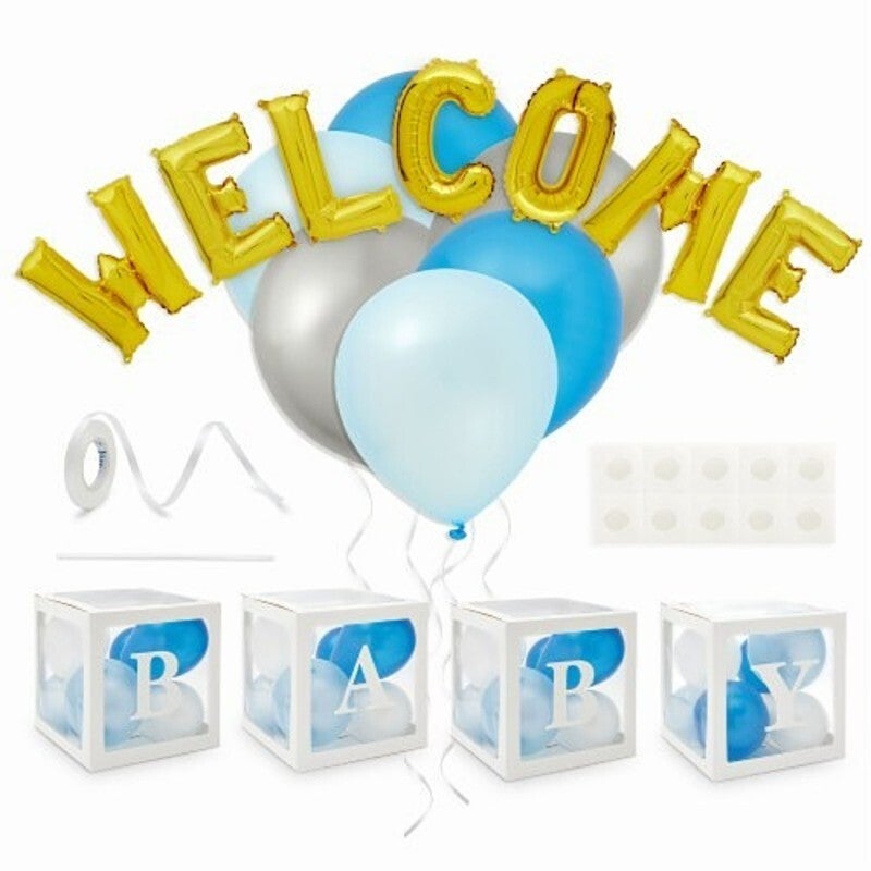 Welcome Baby Boy folie en latex ballonnen blokken pakket