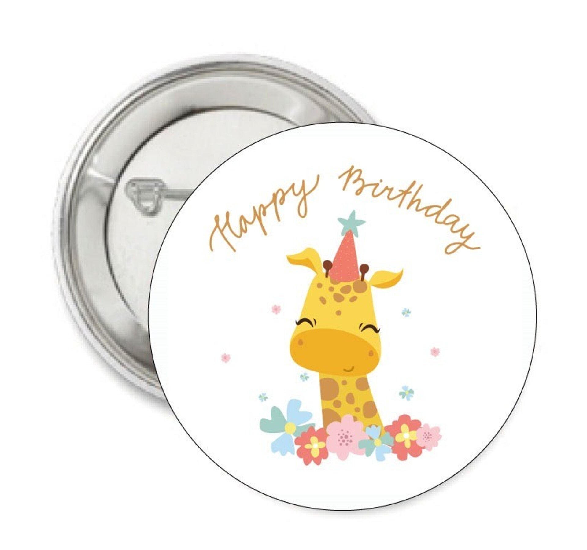 Button of (kleding)magneet Happy Birthday Giraf Flowers met of zonder eigen tekst