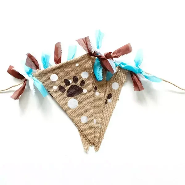 Jute honden slinger met blauwe strikjes
