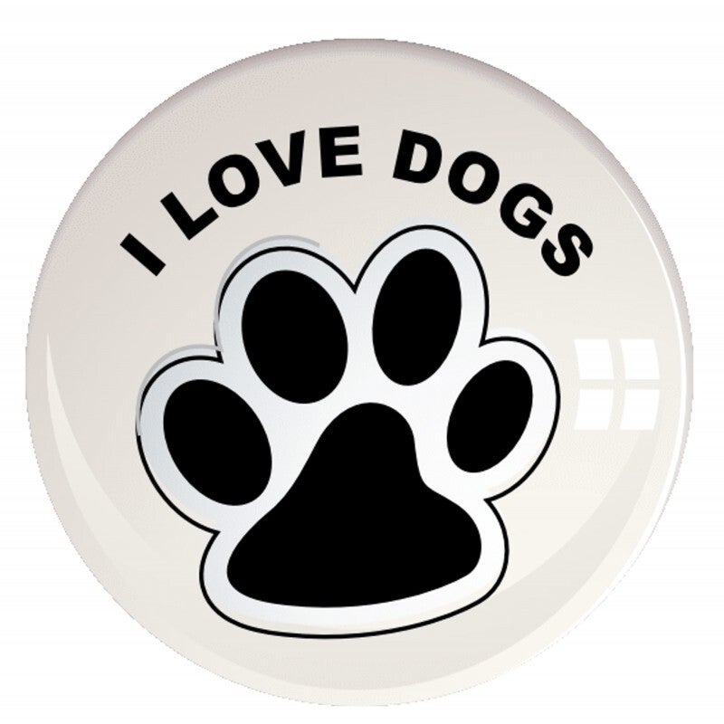 - 8 (koelkast)magneten I Love Dogs. Doorsnede 56 mm. Materiaal: metaal.