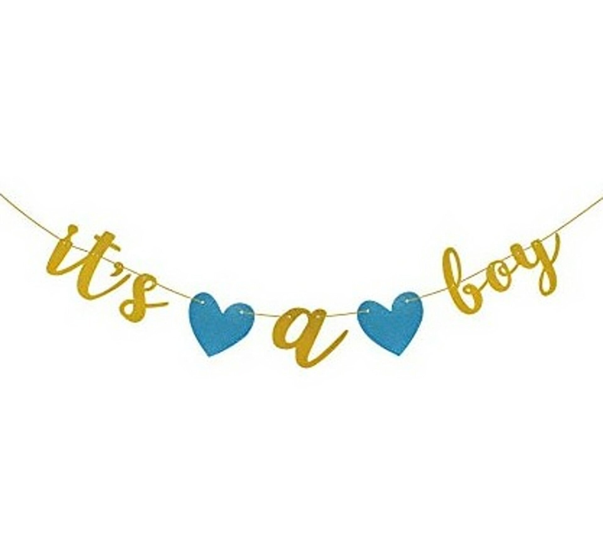 Banner gold glitter met 2 blauwe harten It's a Boy