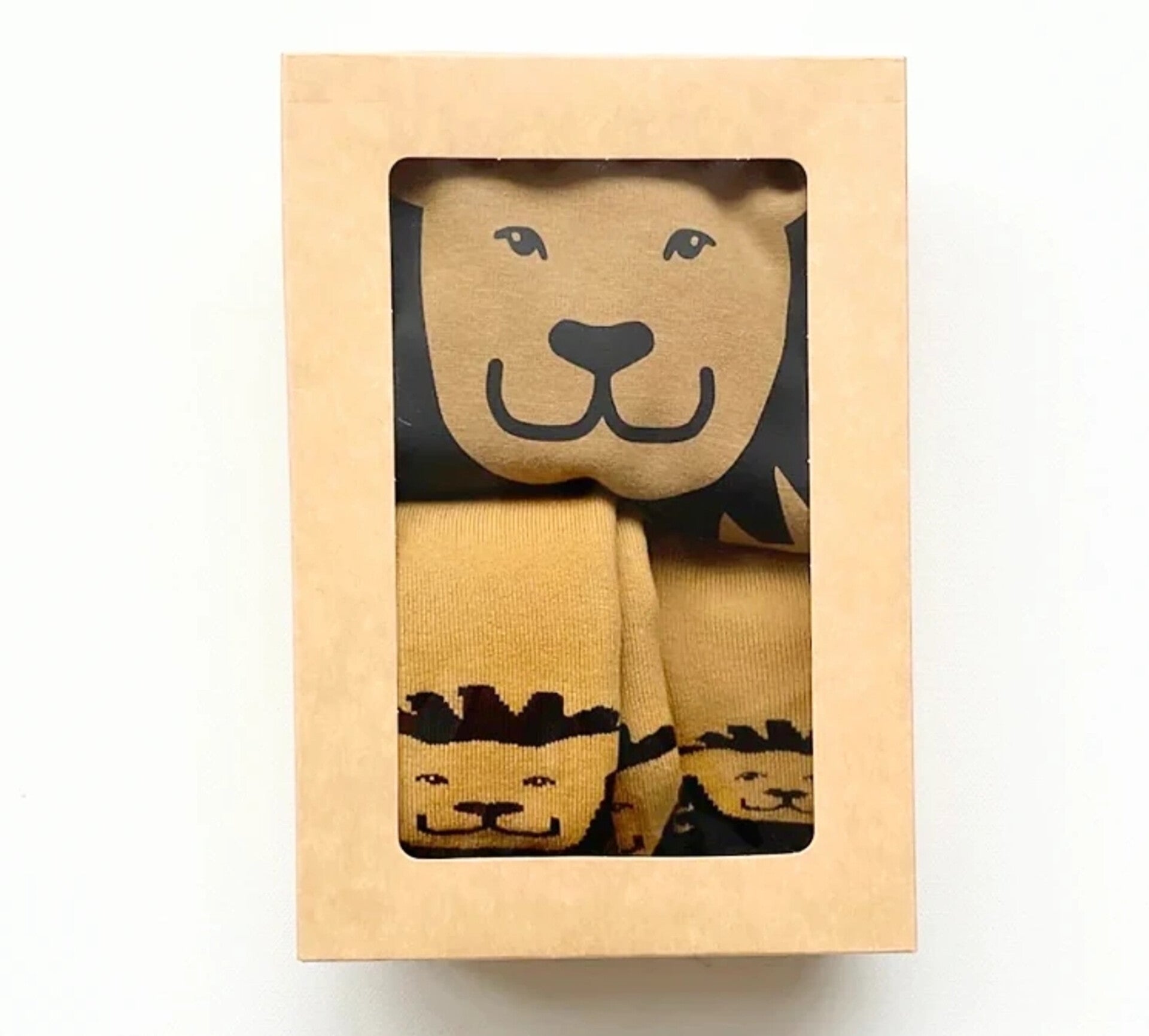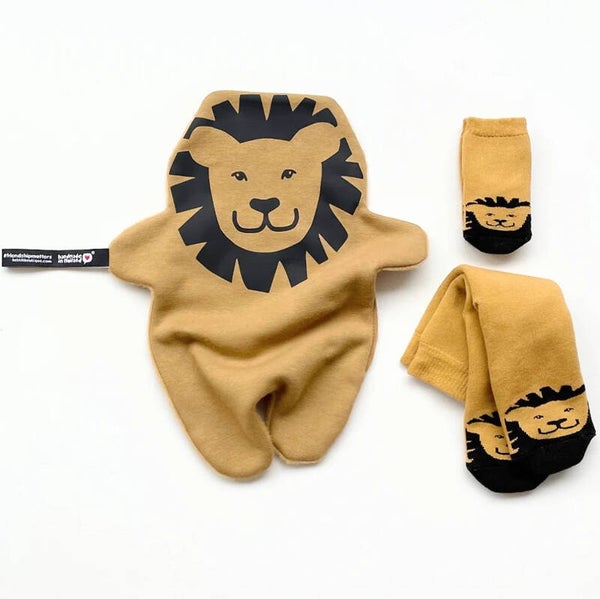 Cadeau set Leo de Leeuw met sokken voor mama en baby en bijpassende knuffeldoek