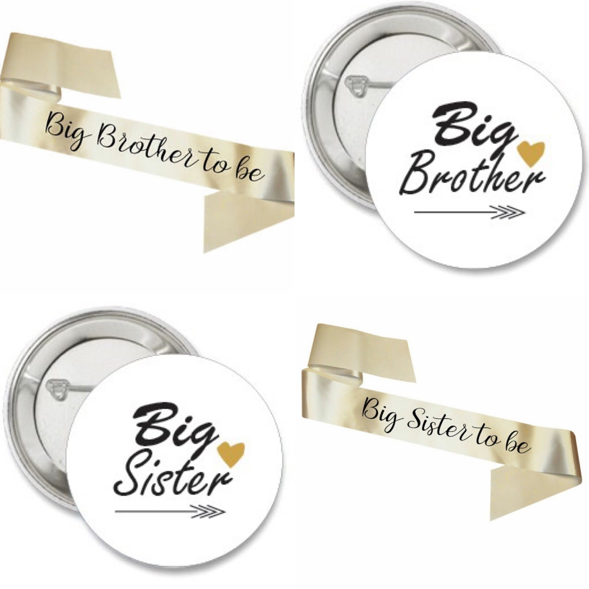 - 2 Sjerpen, 1 Big Sister en 1 Big Brother champagne kleurig met zwarte tekst. Lengte: 180 cm. Breedte: 9.5 cm