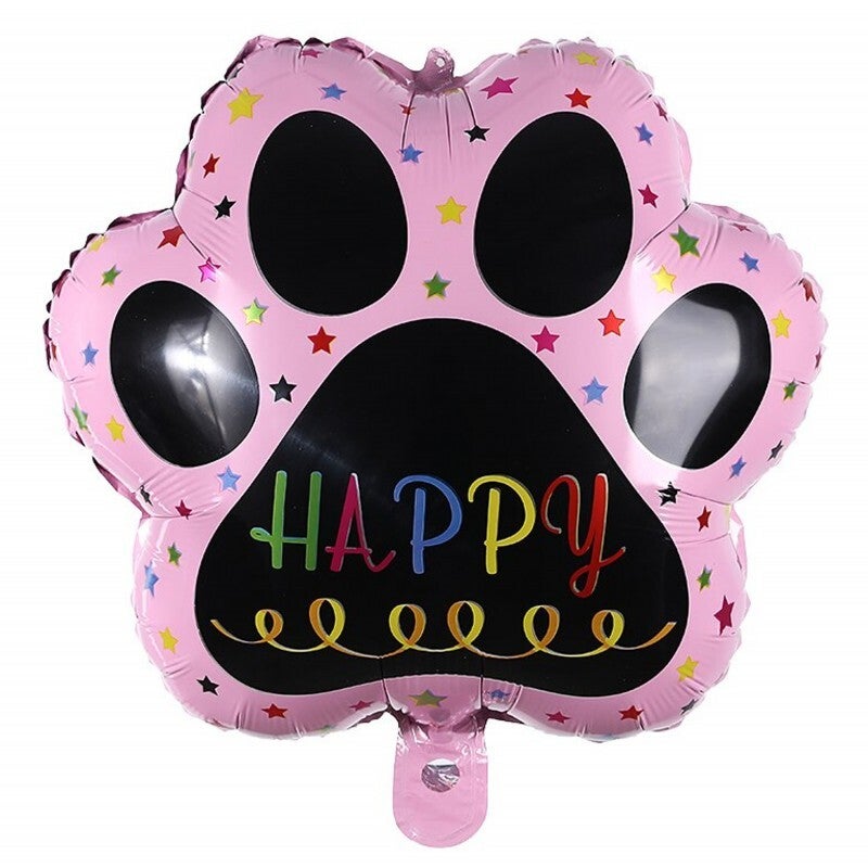 Folie ballon in de vorm van een dieren poot Happy roze zwart