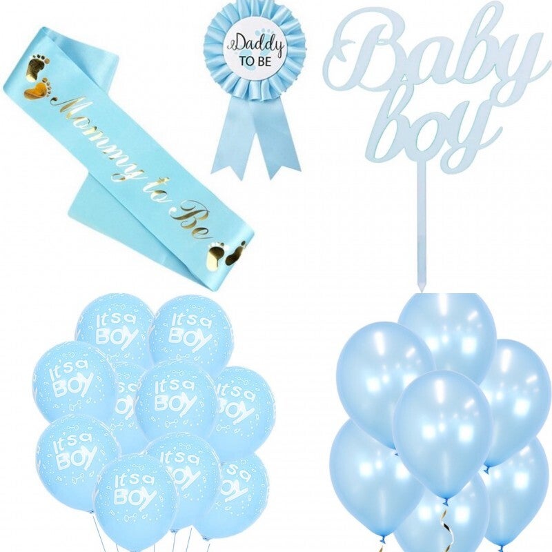 23-delige set Baby boy met sjerp, rozet, taart topper en ballonnen