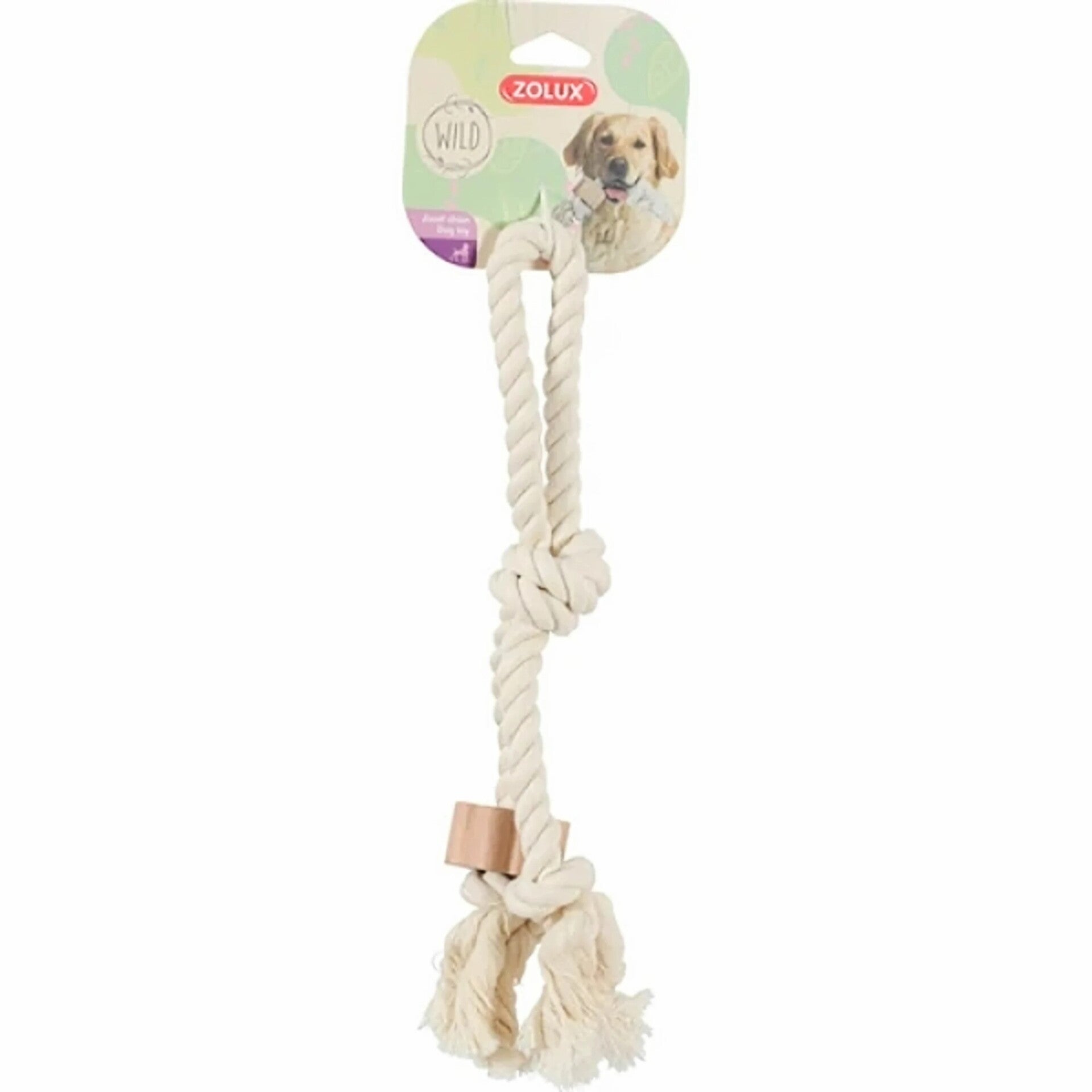De Zolux Wild Flostouw Met Hout Handvat 33 cm hondenspeelgoed is een flostouw hondenspeeltje dat tegelijk de gebitsverzorging ondersteunt. Naast heerlijk gooien, smijten en trekken aan flostouw helpt kauwen op dit touw ook bij de verzorging van het gebit. De structuur van het touw wrijft bij het kauwen en spelen langs het gebit en helpt de tanden zo te ontdoen van bacteriën en zo tandsteen en tandplak te verminderen. Stevig van structuur en goed voor urenlang speelplezier! Aan het touw zit een houten blok, voor nóg meer speelplezier! Door het handvat kan jij het touw makkelijk vasthouden tijdens een spel touwtrekken. Het speeltje heeft een mooie, natuurlijke kleur en is wasbaar.