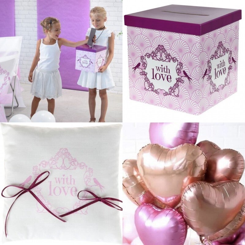 Bruidsset met enveloppen/moneybox, trouwringkussen en folie ballonnen 10-delig Vintage Pink
