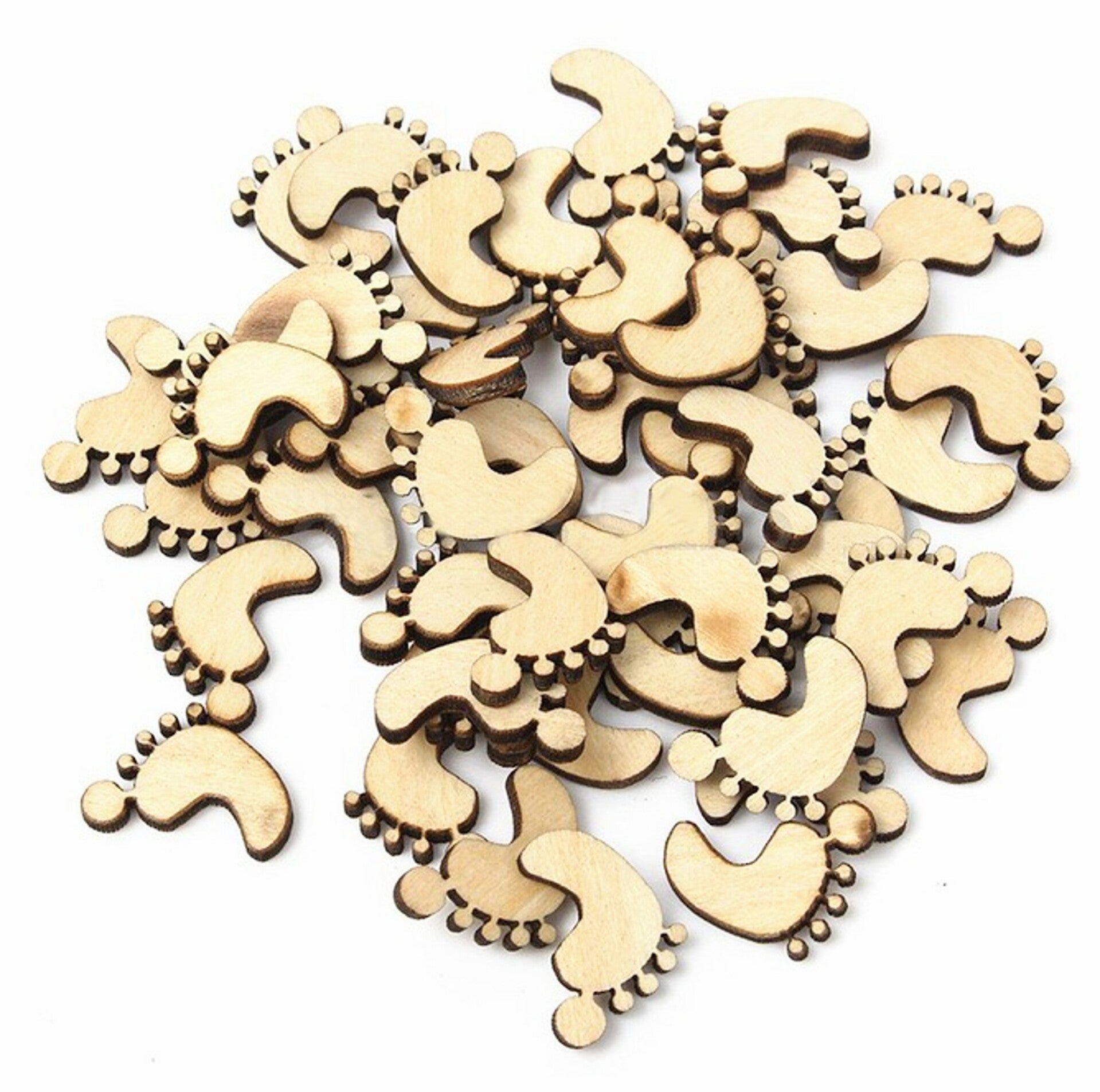 25 mini houten baby voetjes in twee maten