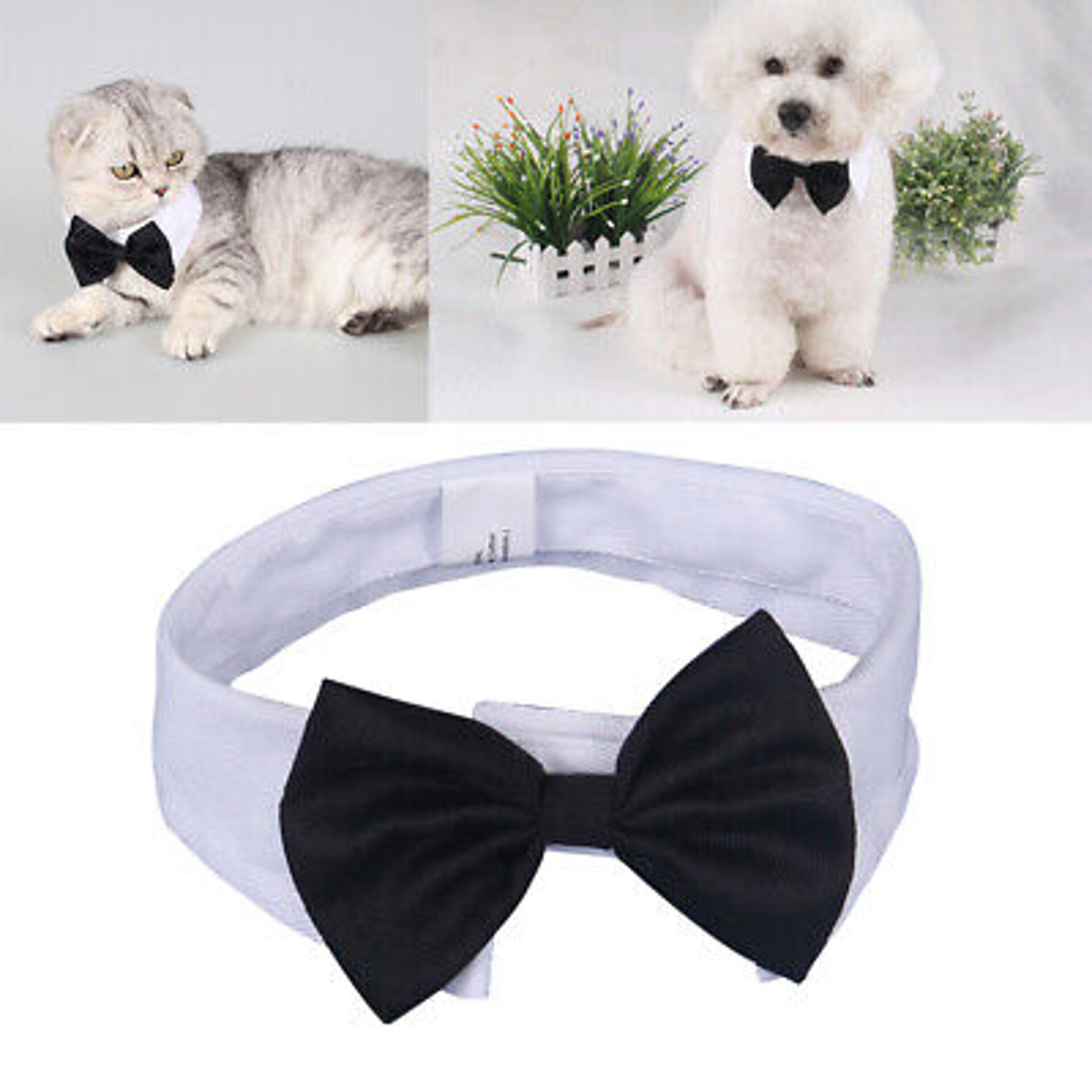 Luxe honden- of kattenstrik met wit boord en zwarte, rode of blauwe strik maat S