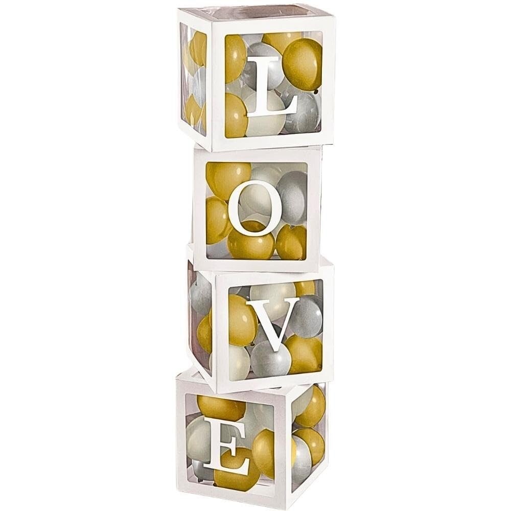 - 4 doorzichtige letter ballon blokken Love wit met 24 ballonnen
