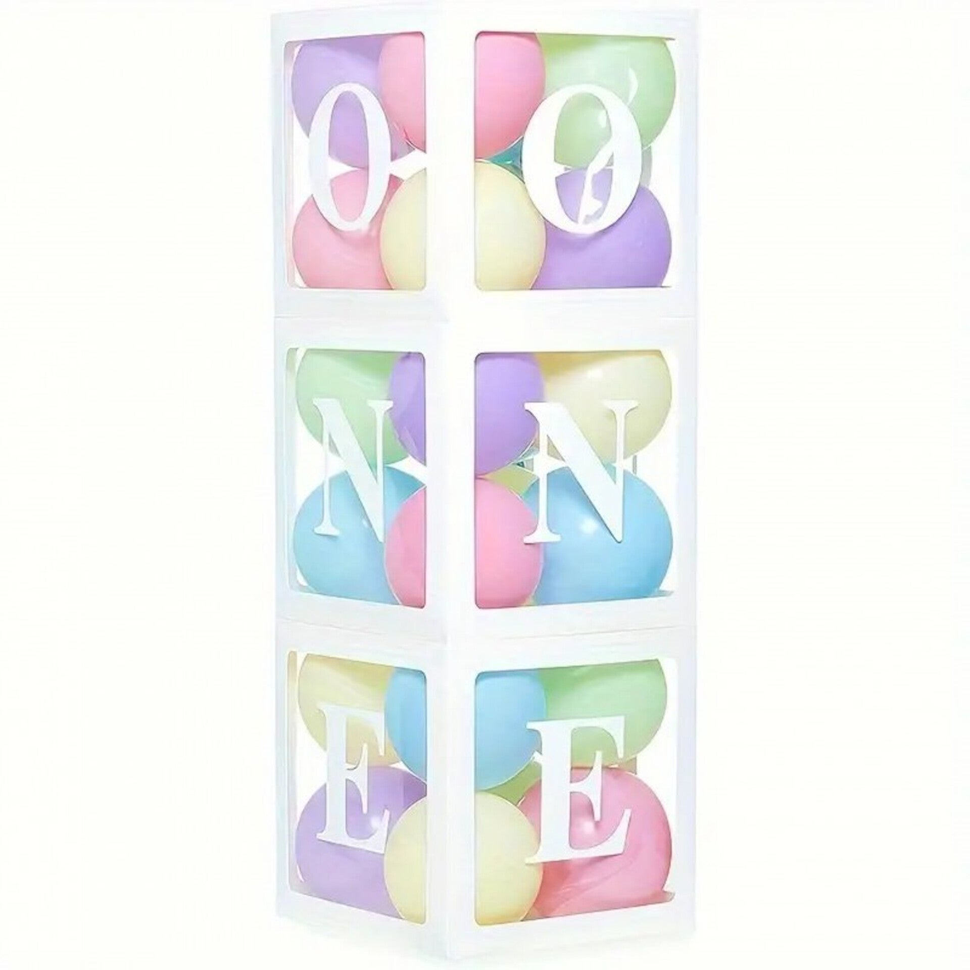 - Drie doorzichtig letter ballon blokken One wit inclusief 18 macaron pastel ballonnen