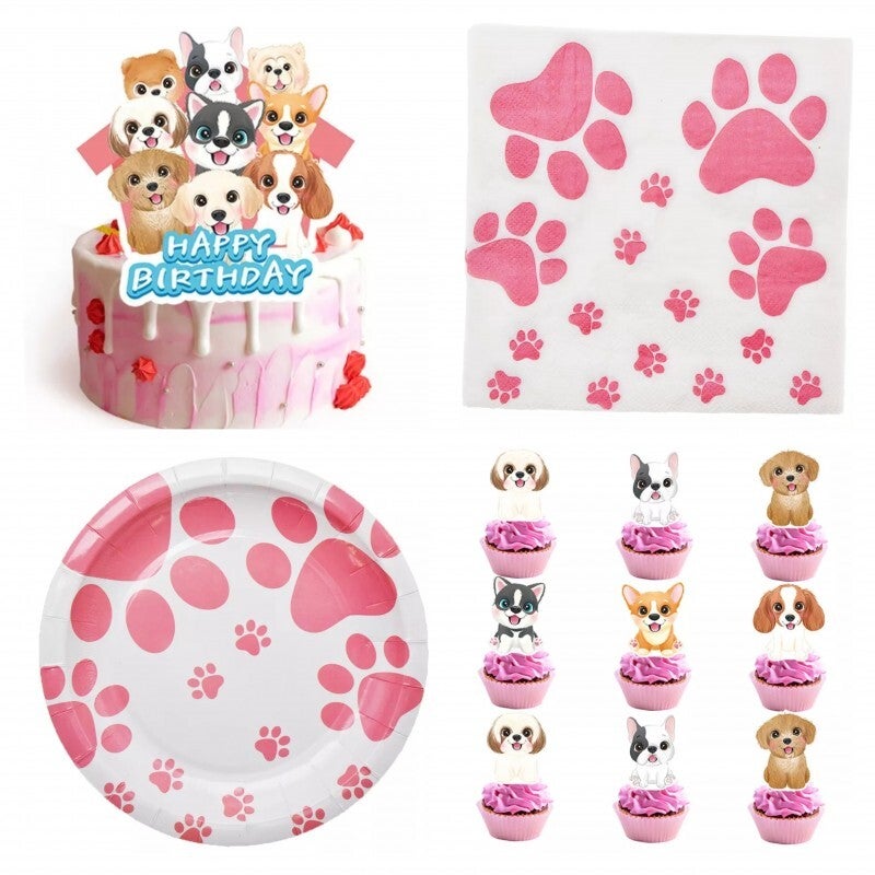 55-delige set Sweet dogs met taart en cupcake prikkers, servetten en bordjes