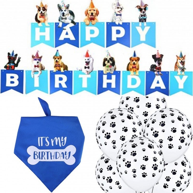8-delige Honden verjaardag set met slinger, bandana en ballonnen
