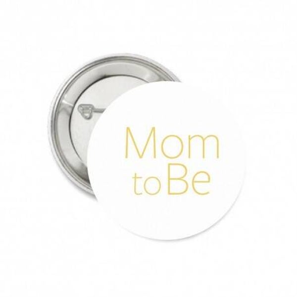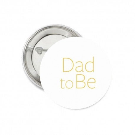- 1 Button Mom to Be en 1 button Dad to Be wit met goud. Beiden met speld aan de achterzijde. Doorsnede: 56 mm. Materiaal: metaal