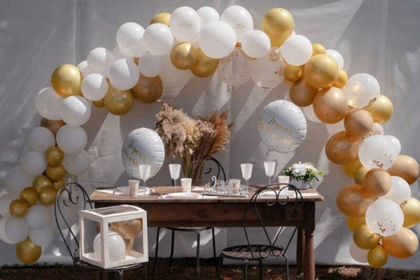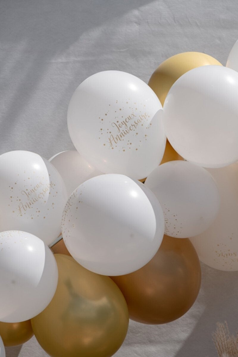 - 10 witte ballonnen met gouden opdruk 50 met een doorsnede van 30 cm