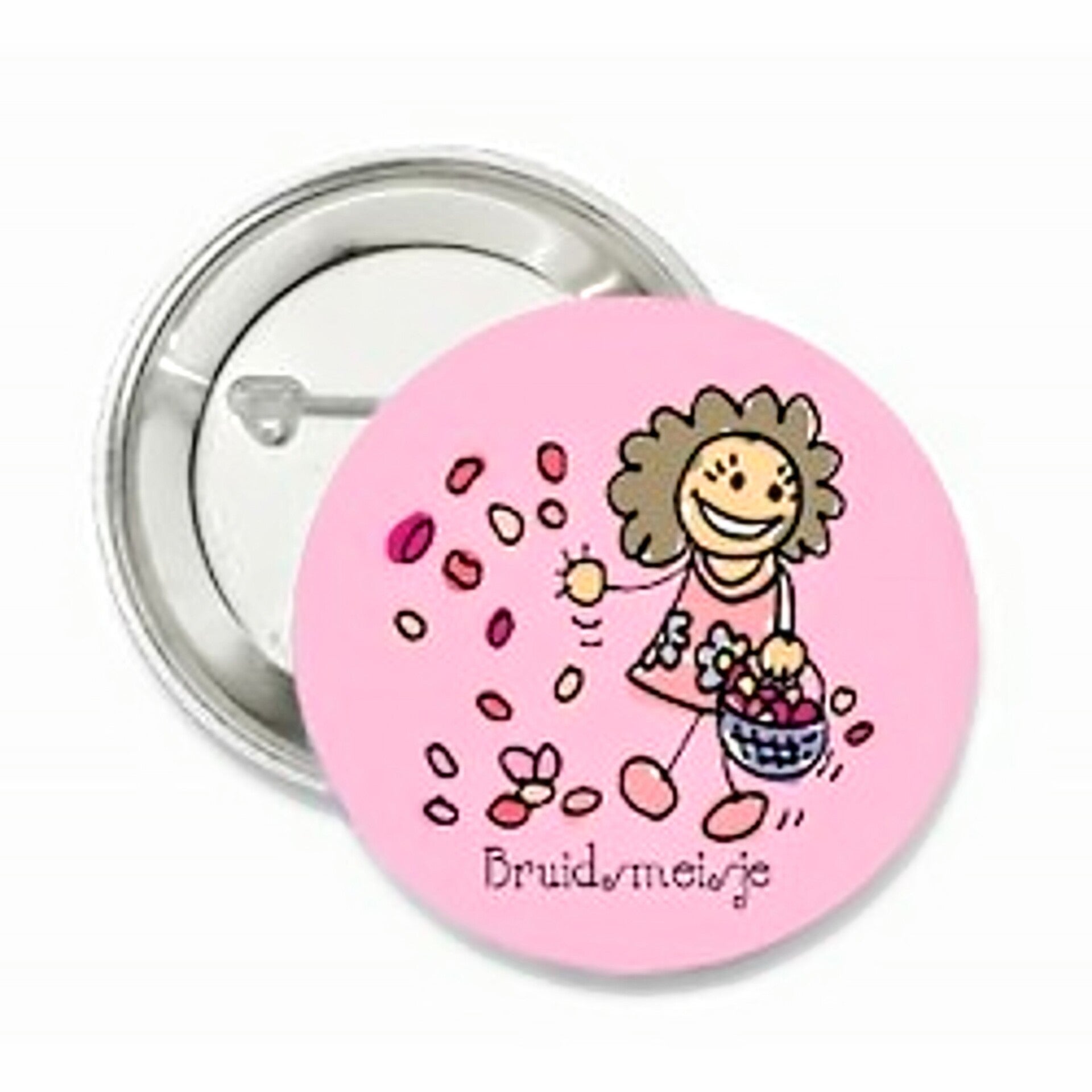 Button of (kleding)magneet Bruidsmeisje roze met of zonder eigen tekst