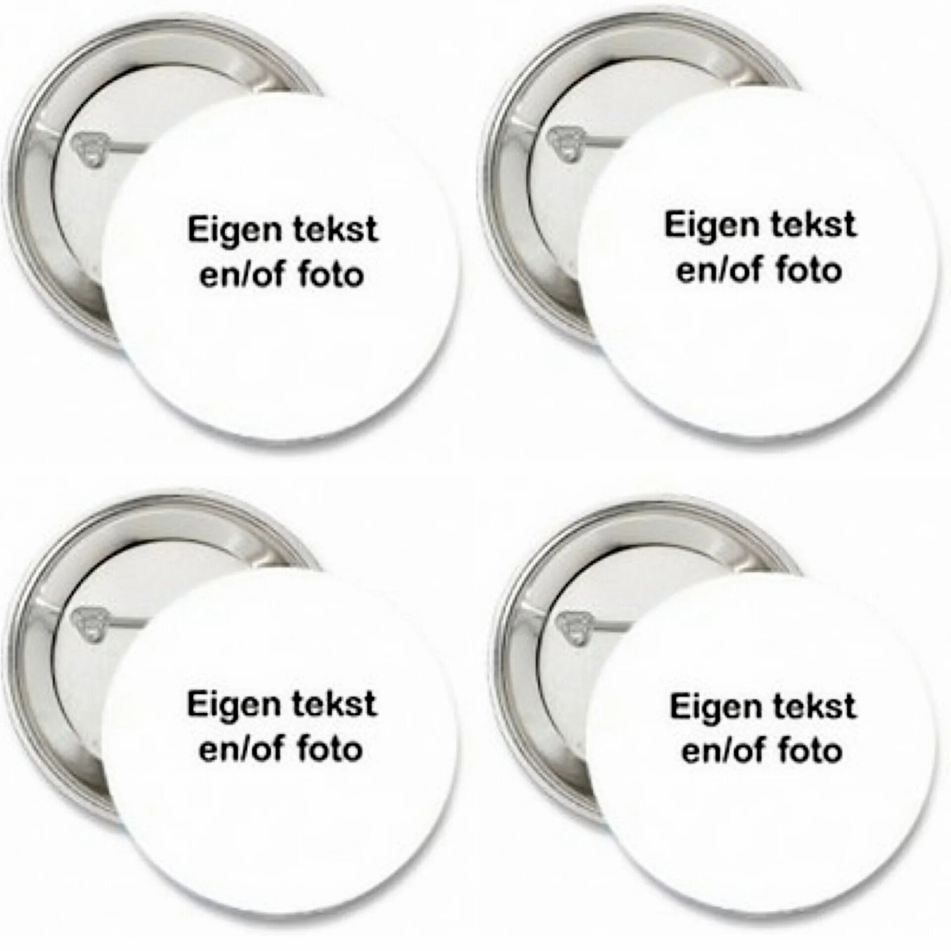 4 Bruids buttons of (kleding)magneten met eigen tekst en/of foto