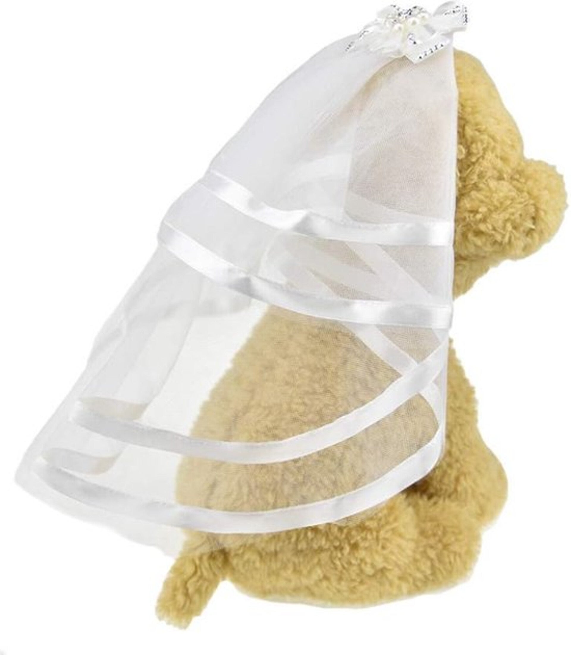 De mooie, dubbellaagse sluier is van tule en afgezet met satijnlint.