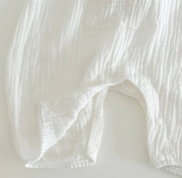 Materiaal: mousseline (95% katoen). Dat is een lichte en zachte, transparante stof, geweven in effenbinding, uit licht getwist garen.