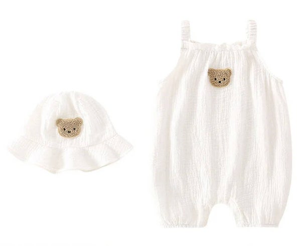 3-delig mouwloos baby pakje met zonnehoedje en vestje