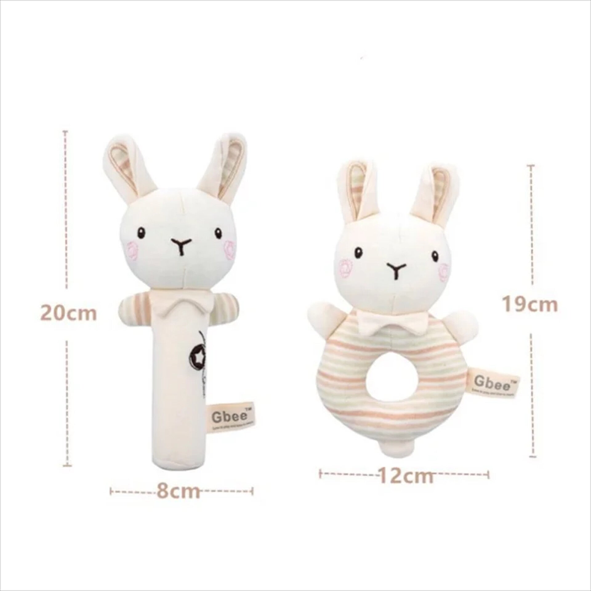 Set met 2 zachte baby rammelaars Klein Konijntje in zachte aardetinten