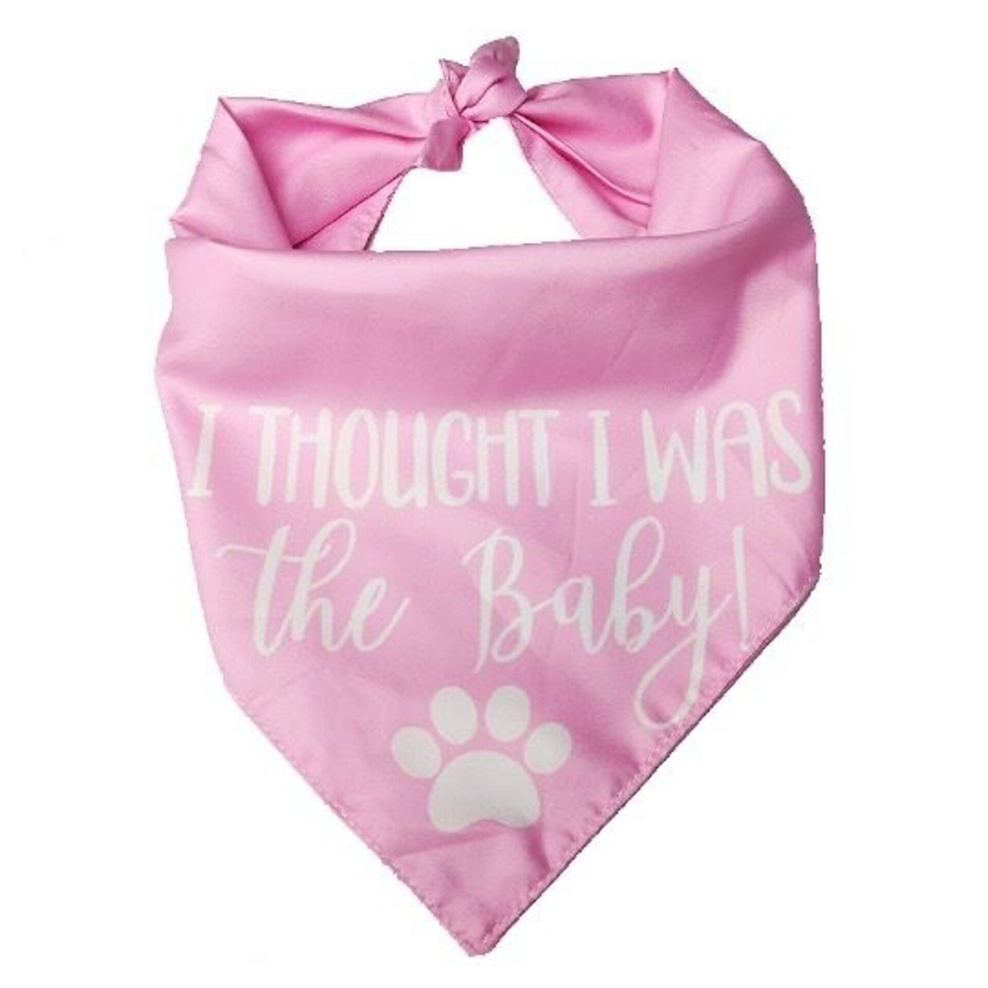 Honden bandana I Thought I was the Baby roze met witte tekst en honden pootje