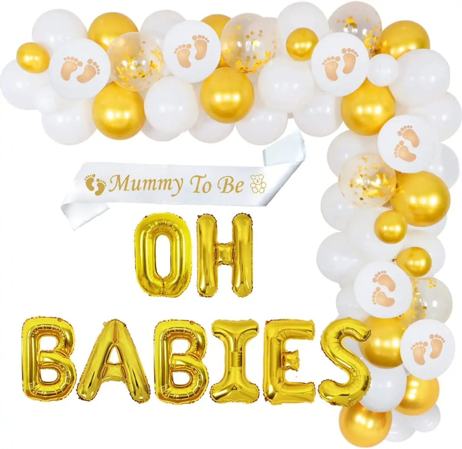 Ballon decoratie set Oh Babies goud met wit 86-delig
