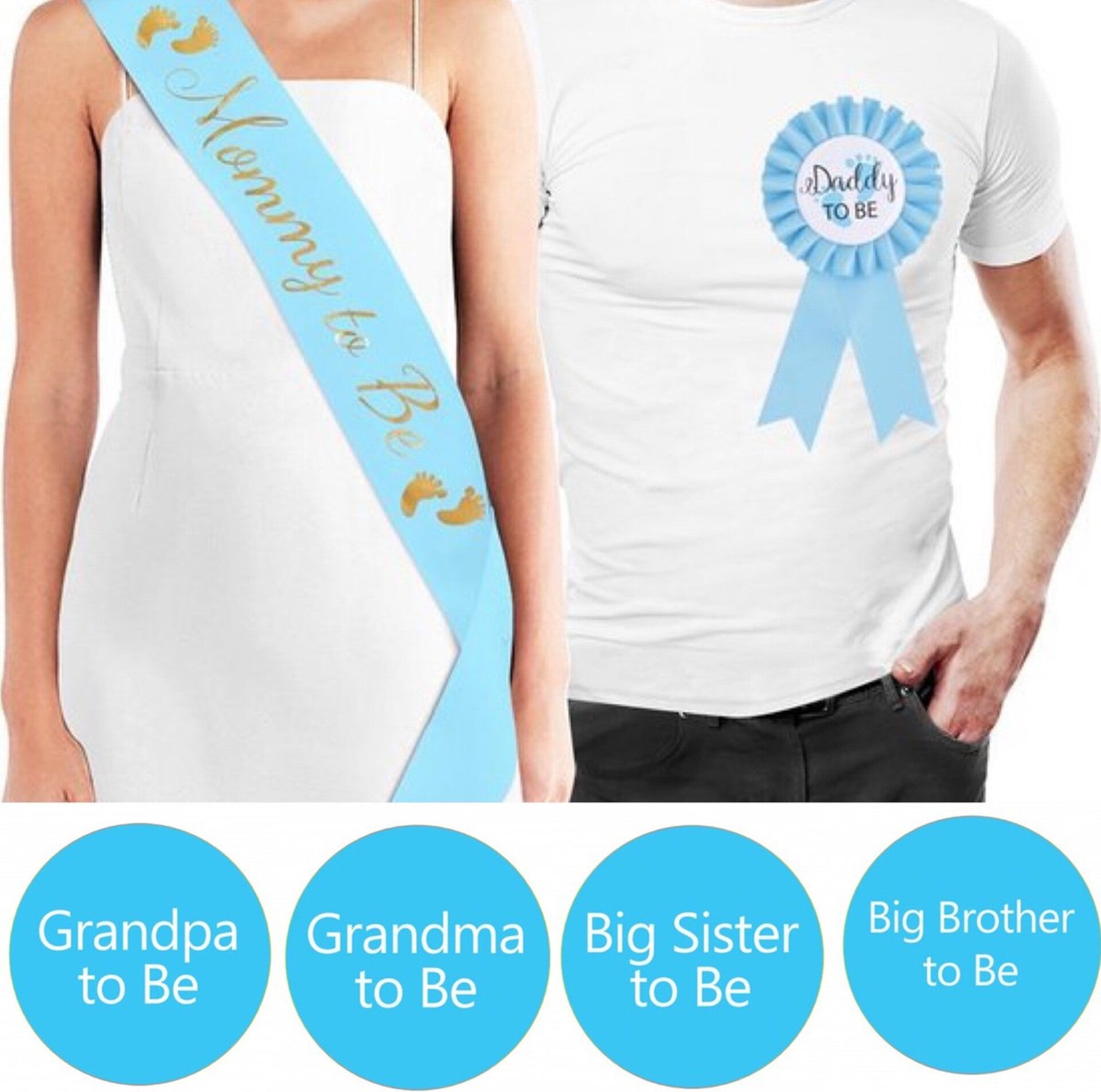 Babyshower of genderreveal set 6-delig met sjerp, rozet en buttons blauw