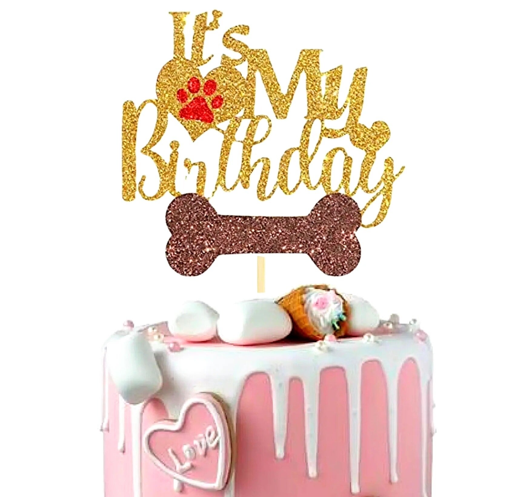 Glitter kartonnen taart topper It's My Barkday