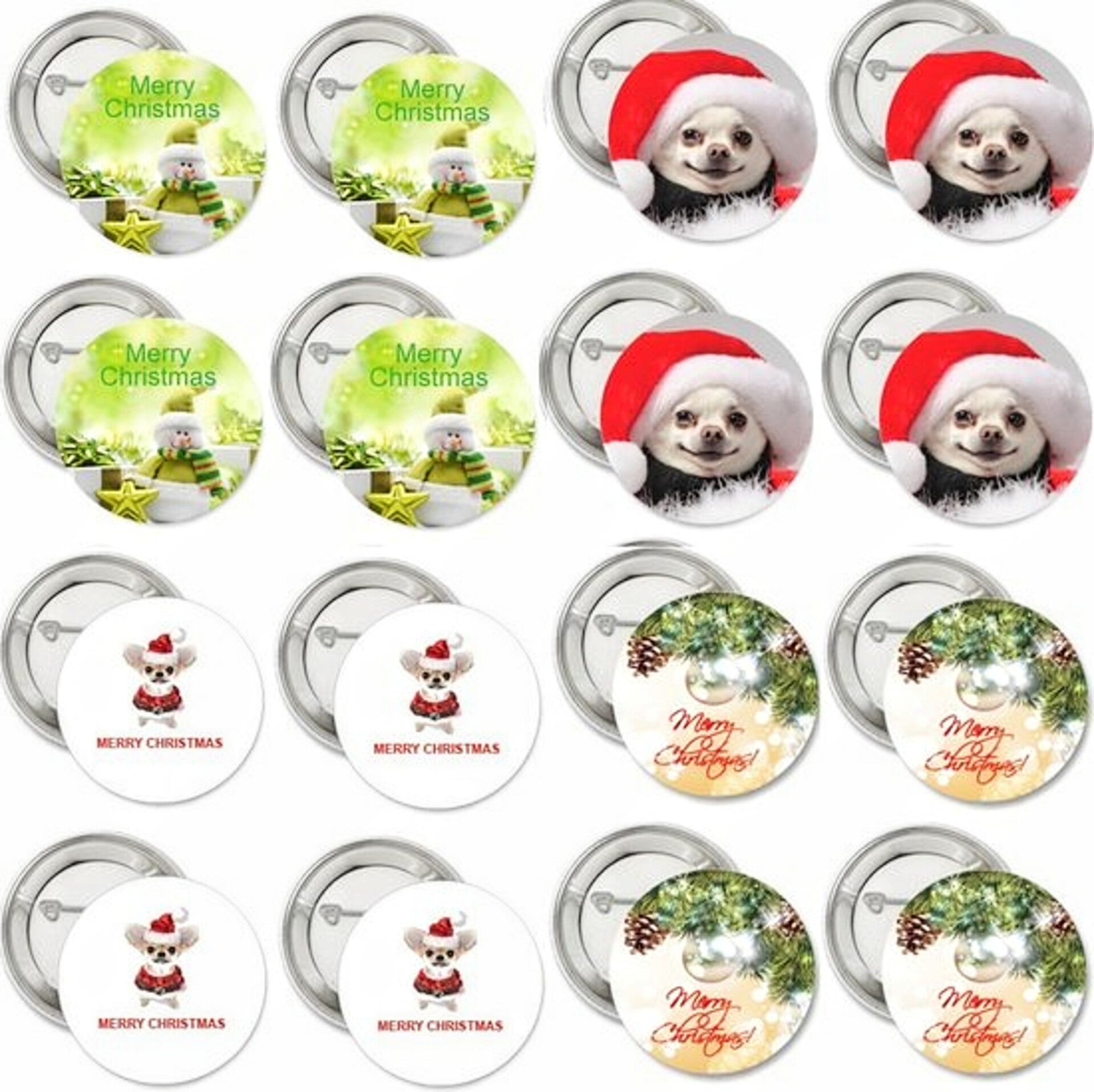 16 kerst buttons met 4 verschillende afbeeldingen