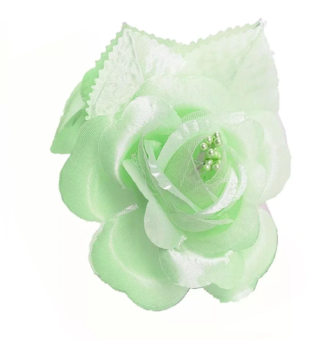 Deze satijnen roos heeft een diameter van ruim 6 cm.