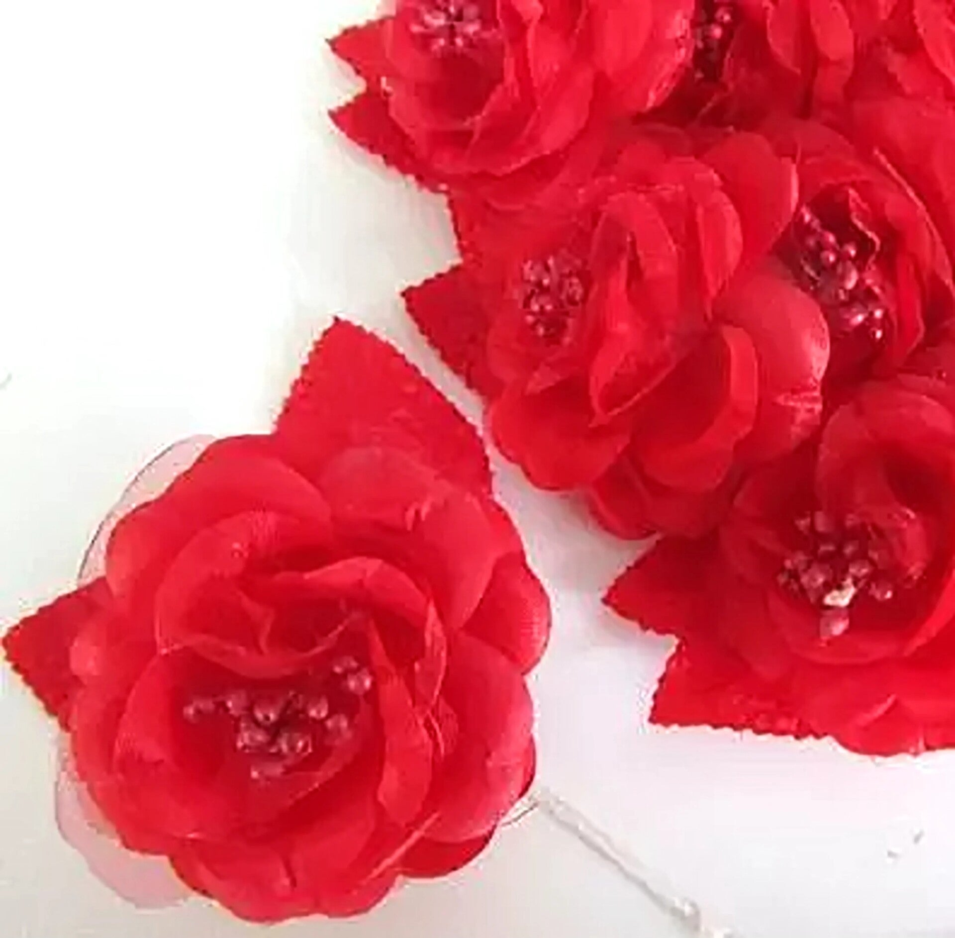 Deze satijnen roos heeft een diameter van ruim 6 cm.