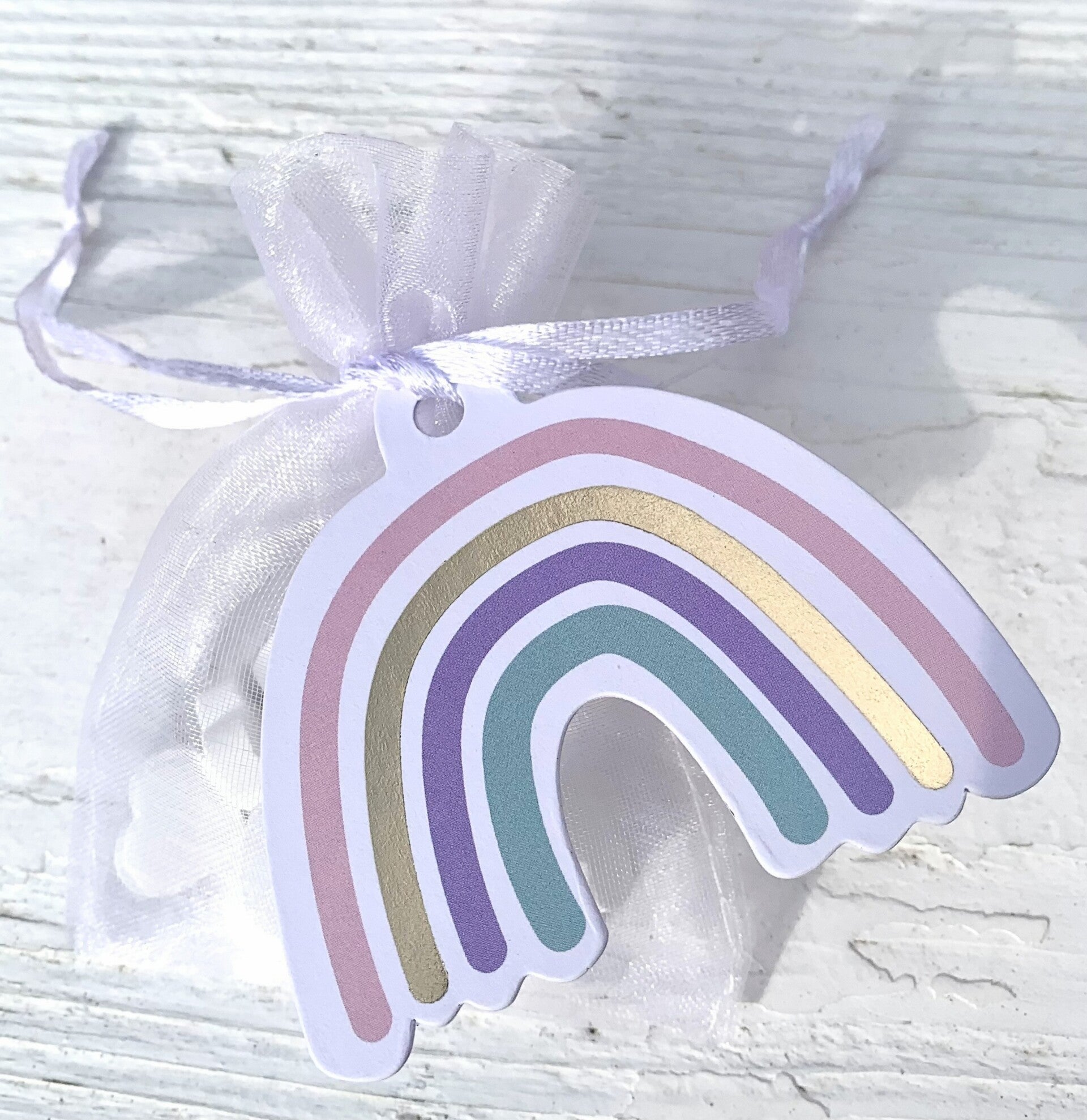 Organza zakje wit met kaartje Regenboog en 10 hartvormige mini pepermuntjes
