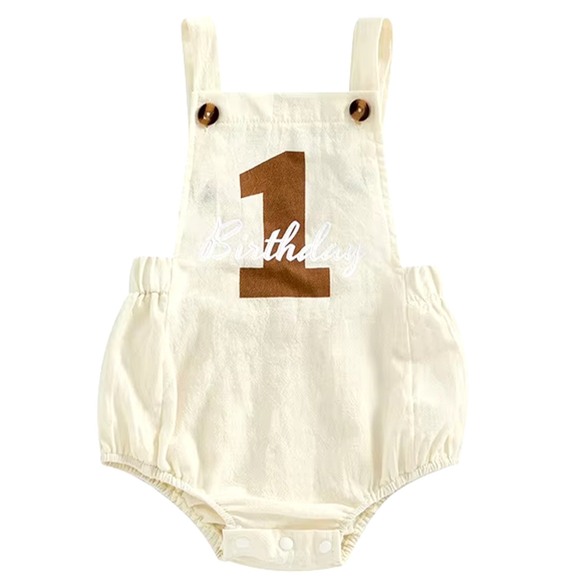 Eerste verjaardag kruippakje ivoor met wit en bruin