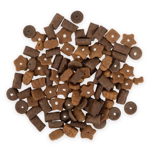 Samenstelling: Granen, Vlees en dierlijke bijproducten (waaronder 15,3% kip, 5,1% kalkoen, 10% rundvlees), Oliën en vetten, Mineralen, Vis en visbijproducten, Plantaardige derivaten (waaronder 1% lignocellulose), Plantaardige eiwitextracten, Gist