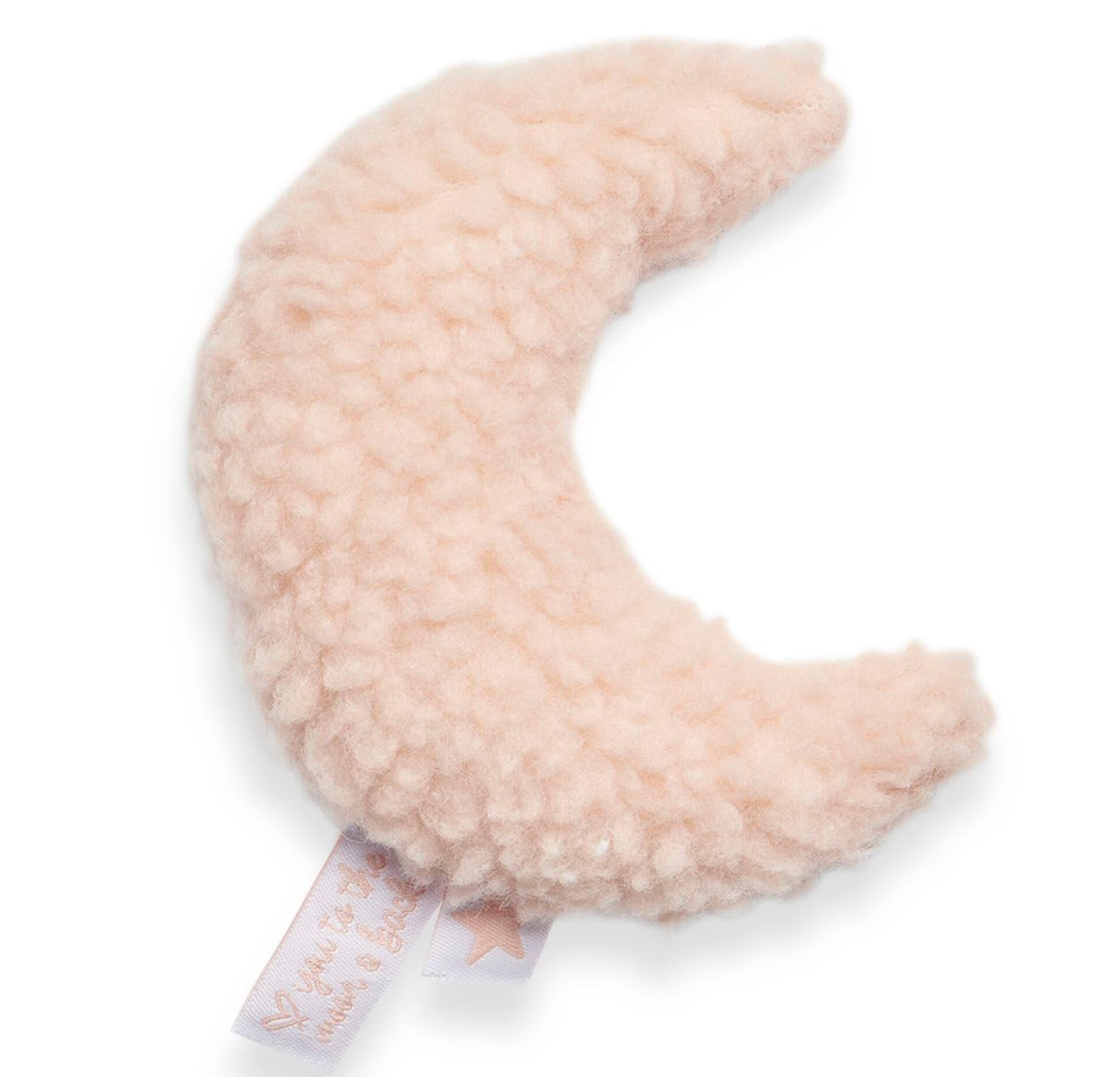 Kleintjes vinden het fijn om hun skills te oefenen. Als ze beginnen met grijpen is een rammelaar erg leuk en uitdagend. Oefen om de rammelaar vast te houden en voor de gevorderde trainer maakt het belletje in de rammelaar een zacht geluidje. Dit stimuleert de bewegingen. Naast dat hij leuk is om mee te spelen in dit maan vriendje ook nog een superzacht!