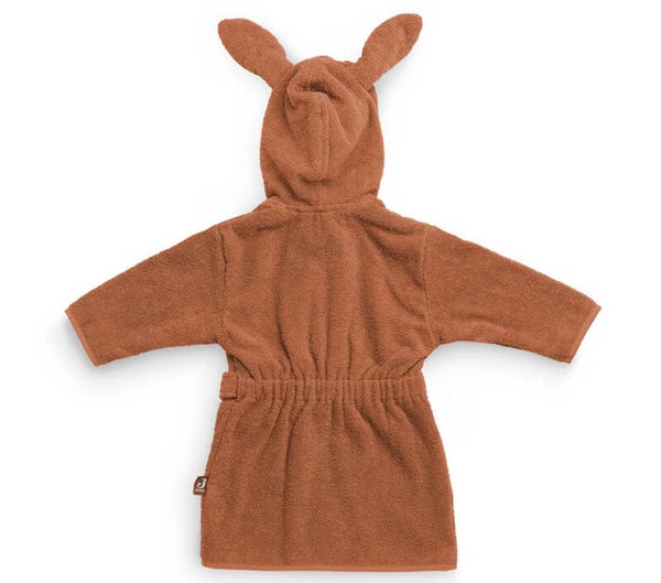 Hoe leuk is dit badjasje? De badjas is perfect om te gebruiken na het badderen, douchen of zwemmen. De zachte badstof neemt gemakkelijk water op en houdt daarmee jouw kleintje lekker warm. De vrolijke capuchon met oren droogt gemakkelijk de haartjes. Het badjasje is ook handig om mee te nemen op vakantie of mee naar een logeerpartijtje. Het badjasje heeft een handig drukknoopje om hem dicht te houden bij het dragen, elastiek in het rugpand voor de perfecte pasvorm en de ceintuur zit aan het badjasje vast zodat je hem niet kan verliezen. De badjas is verkrijgbaar in de kleuren: Ash Green, Sea Green, Biscuit, Caramel, Ivory, Jeans Blue, Nougat, Wild Rose, Pale Pink en Biscuit. Bekijk ook onze gestreepte badjasjes!