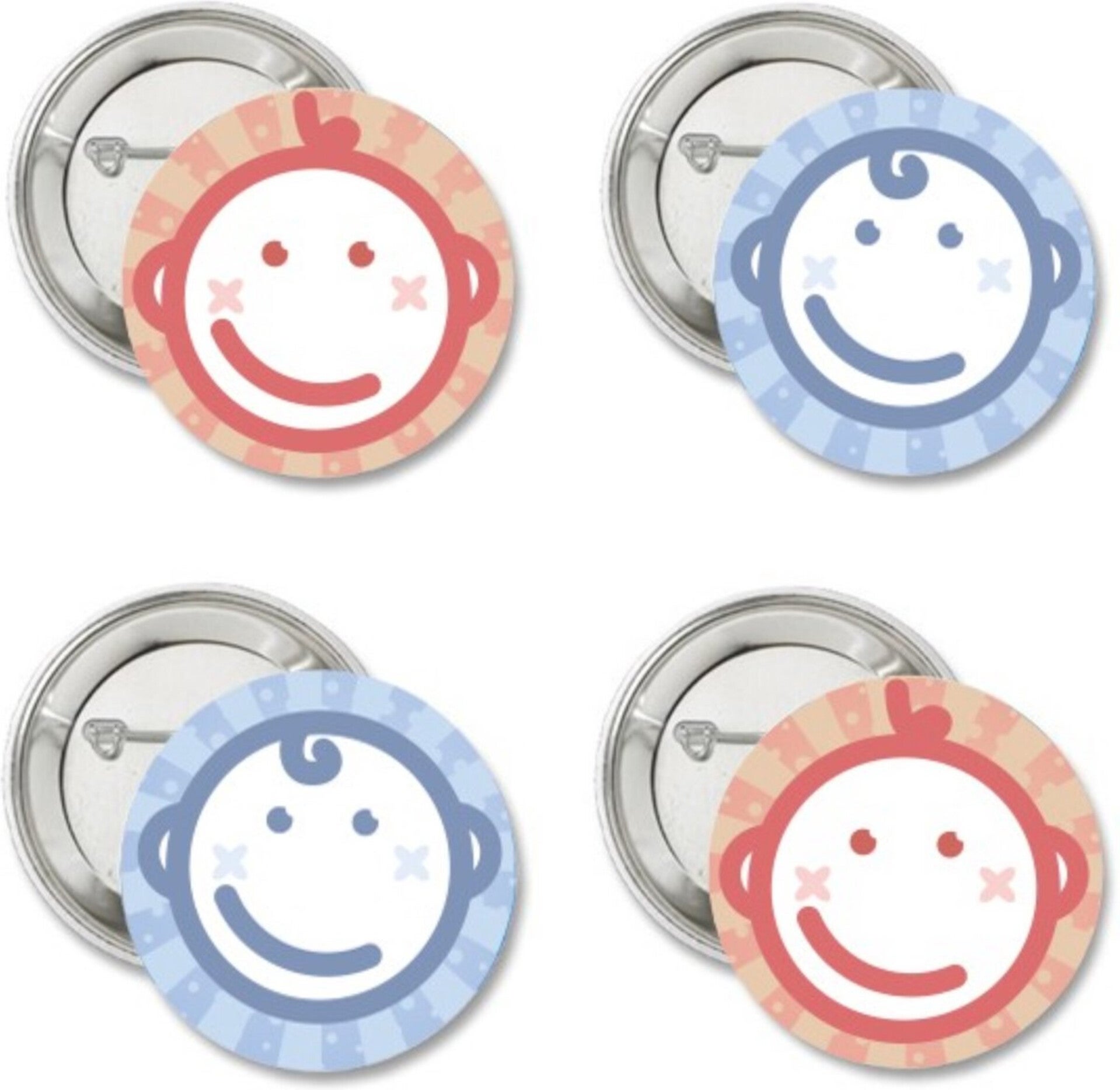 Deze set bestaat uit: 6 blauwe en 6 roze buttons