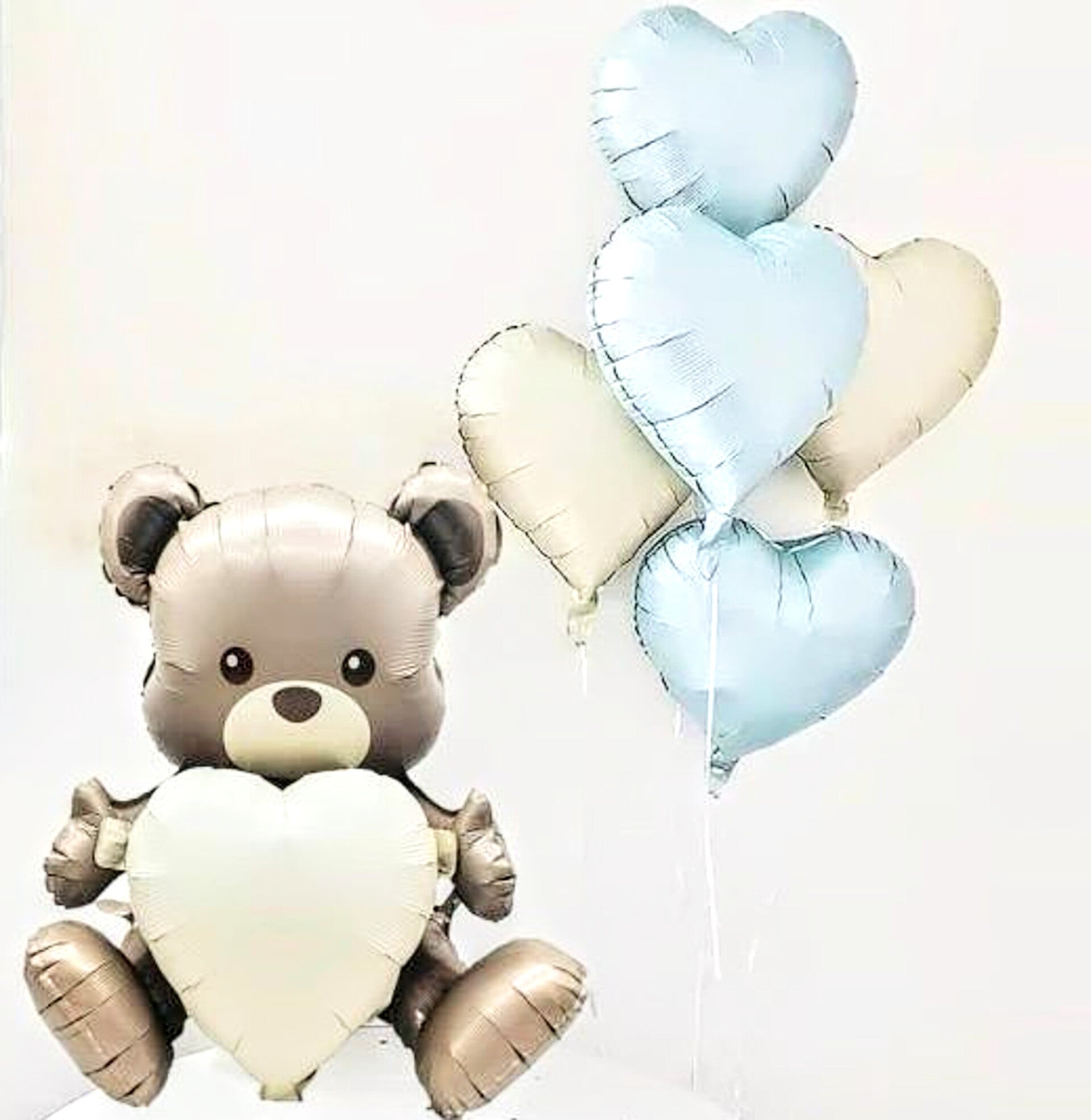 - 1 Grote folie ballon Beer met hart. Afmeting: 89 x 65 cm